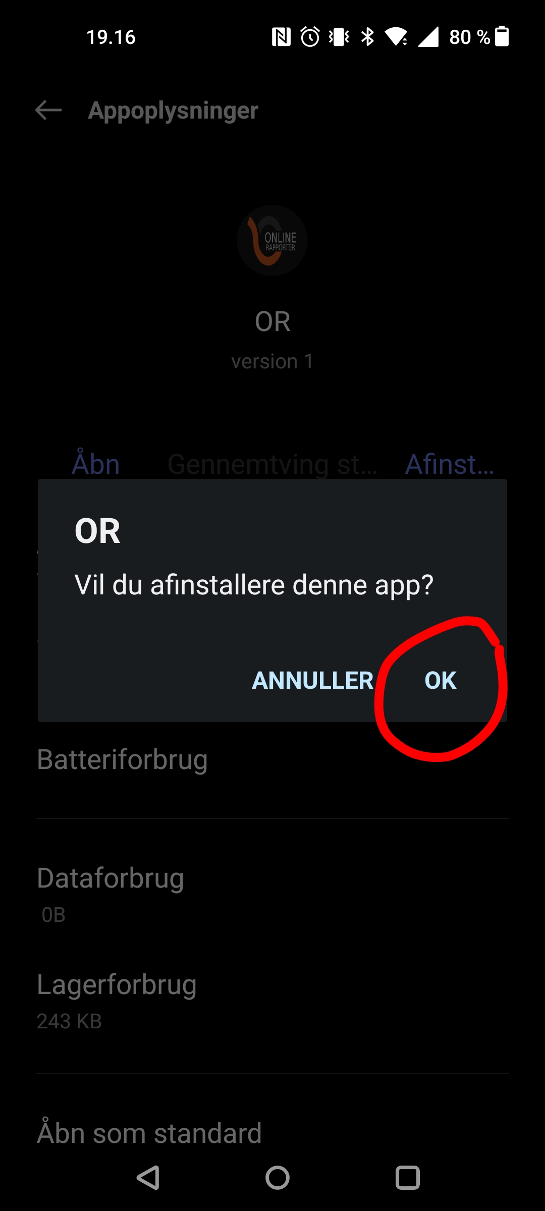1. Hvis du har installeret Appen skal du afinstallere den igen (følgende 6 billeder viser hvordan). Hvis du ikke har installeret App'en kan du fortsætte til punkt 2.
